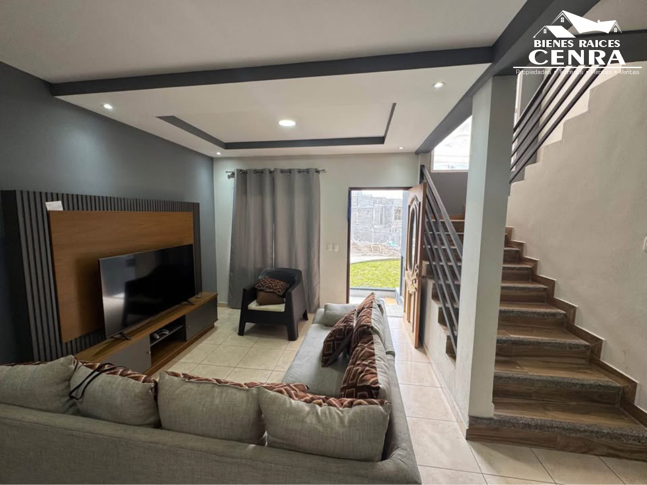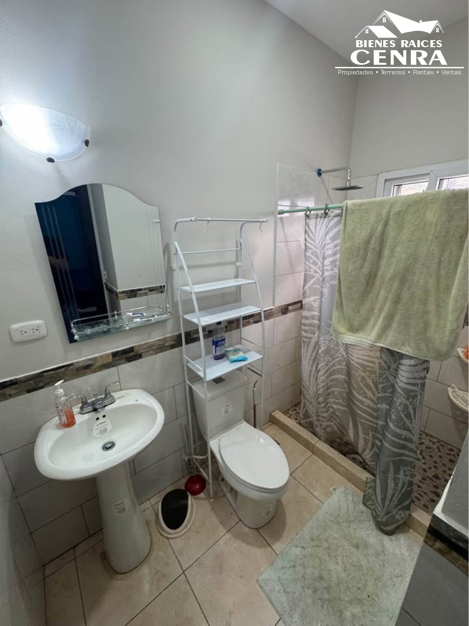 Consta 1er Nivel: sala, comedor, cocina amueblada, 1/2 baño, área de lavandería con instalación de lavadora & secadora, parqueo para 2 vehículos. 2do nivel: media sala, habitación principal con A/C su walking closeth & baño privado, 2 habitaciones & 1 baño completo.