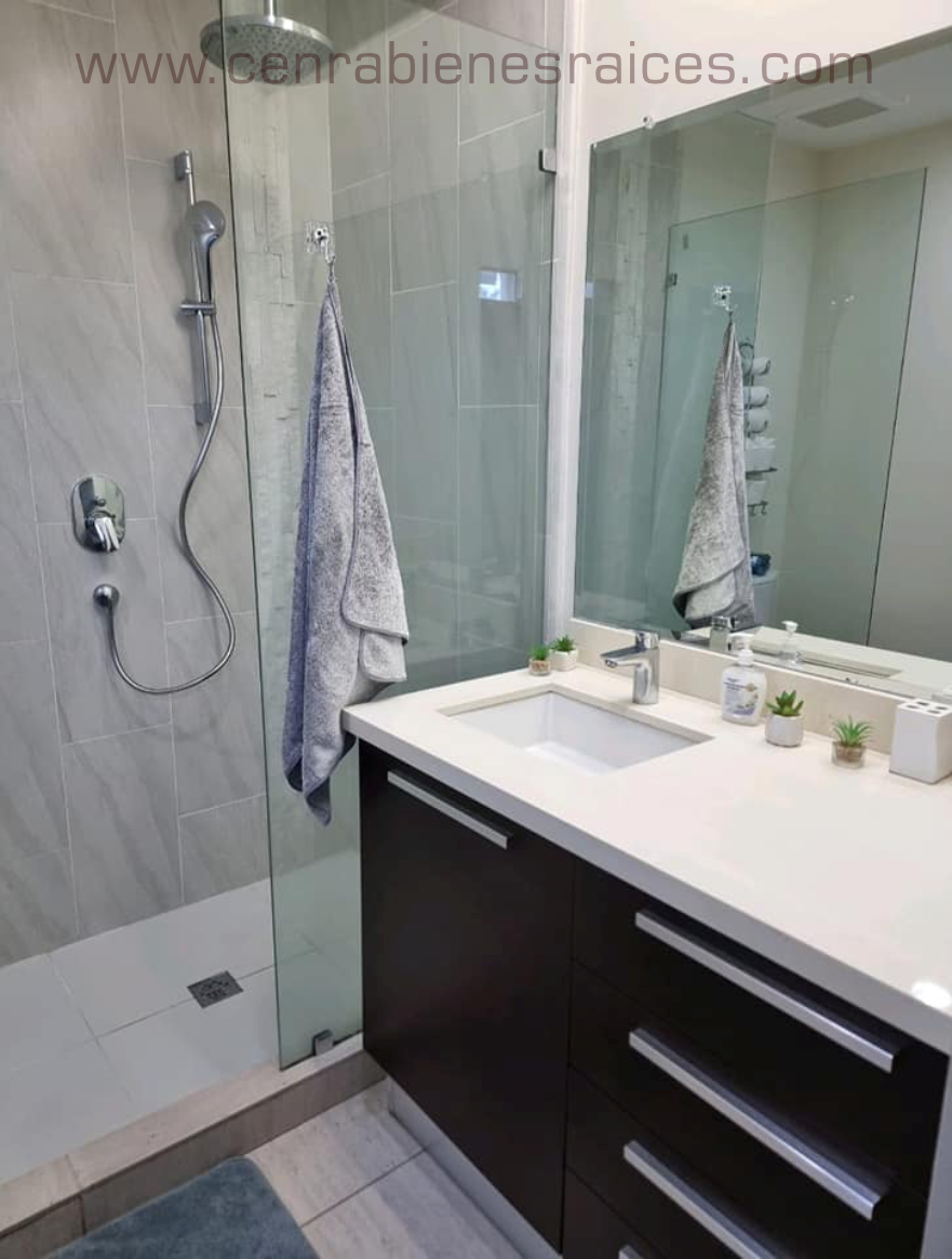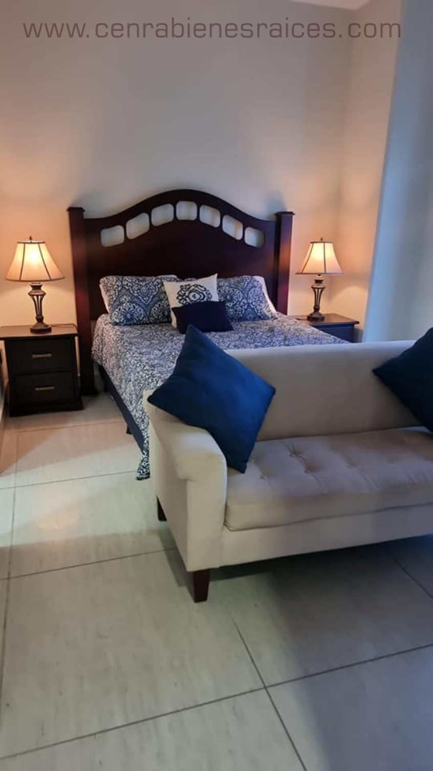 Sala, comedor, cocina amueblada, una habitación con su baño, walking closet, terraza, lavandería, un estacionamiento, área social con piscina, área verde, pista de correr, Gym, barbacoa, sauna, salón de cine y salón multiusos.