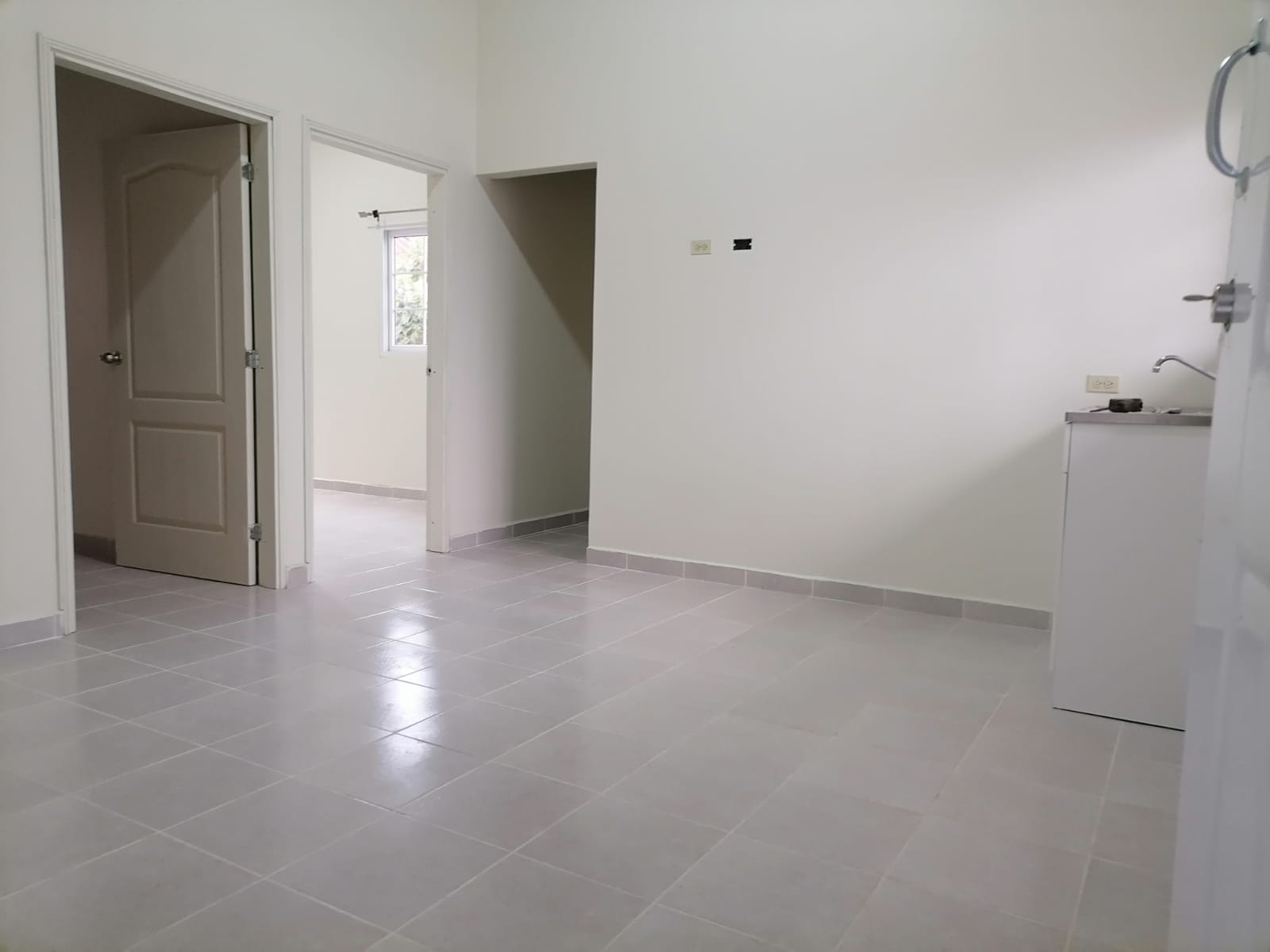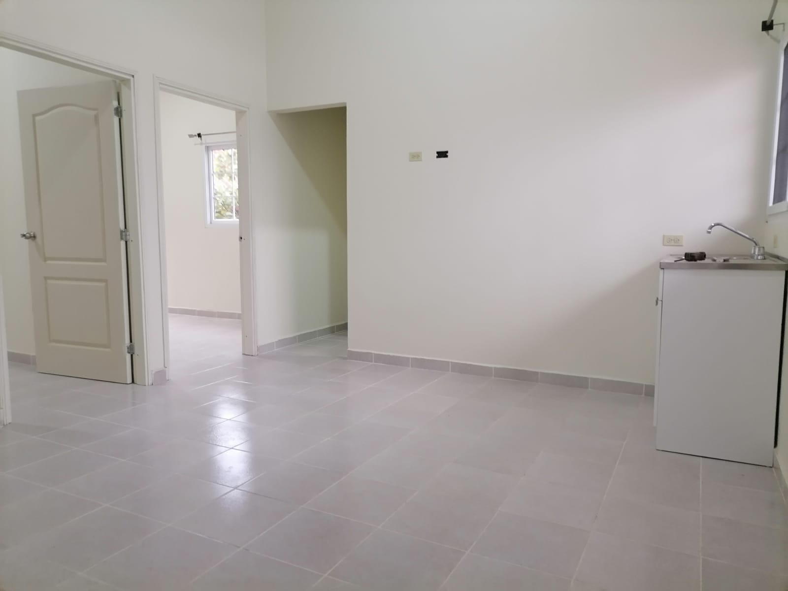 Sala-Comedor y cocineta con mueble parte de abajo , 2 Habitaciones (con Closet solo una habitación) 1 baño y ducha , Área de lavandería e instalación de lavadora.