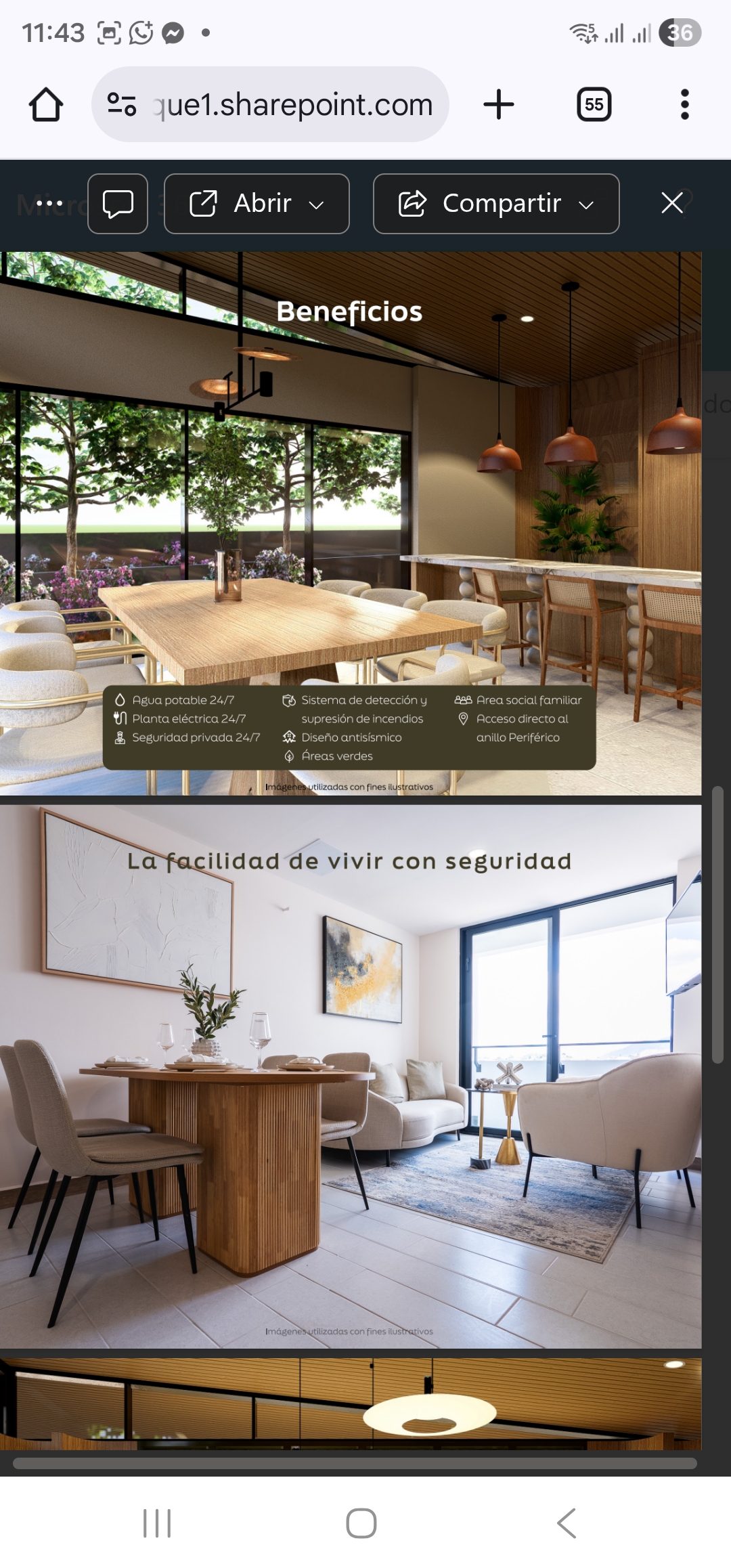 Beneficios: agua potable 24/7, planta eléctrica, seguridad privada, diseños antisismicos.