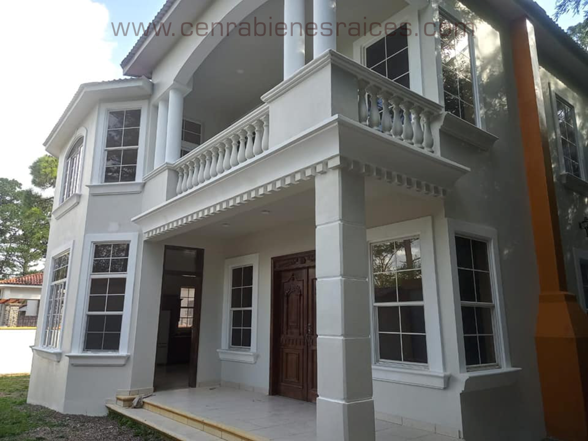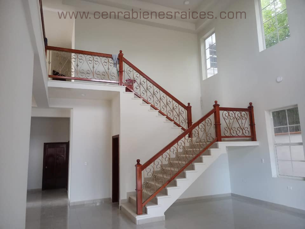 Segundo piso: 4 habitaciones cada una con baño, sala familiar, terrazas, balcón, ventanales.